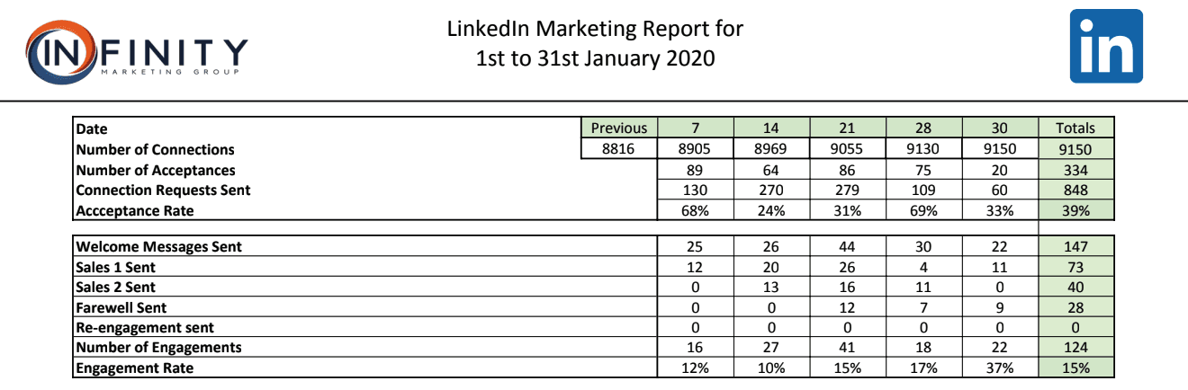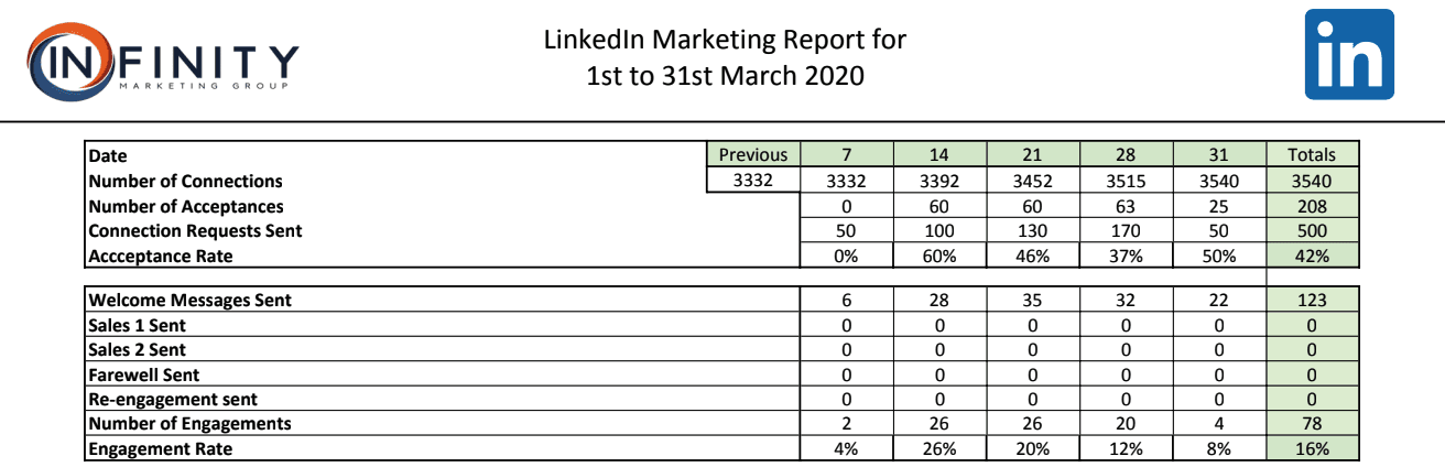 Data: Over a month, increased connection acceptance rate to 42% and our sales funnel has an engagement rate of 16%